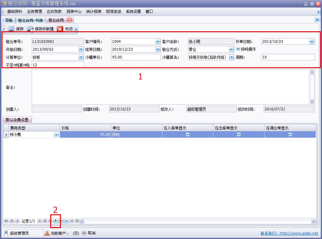 系統(tǒng)默認費用的自由設定,業(yè)務模塊單據(jù)自動生成所涉及的費用名稱和費用的單價,例如:商品入庫單默認設定具有冷藏費和搬運費,并設定了單價,那么在冷庫管理信息系統(tǒng)進行入庫操作時,費用與單價自動顯示,總金額也即會自動生成。如果因為出現(xiàn)對應不同的客戶,所產(chǎn)生的費用單價與默認費用不一樣,也可直接在入庫單據(jù)上修改單價。這樣就讓冷庫企業(yè)在業(yè)務繁忙的時候,減少了業(yè)務工作量,提高了冷庫企業(yè)的工作效率。