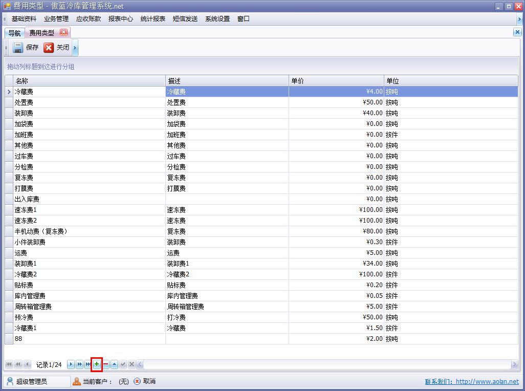 可根據冷庫實際業務中,會產生的費用項目,自行添加到系統里,如圖:
