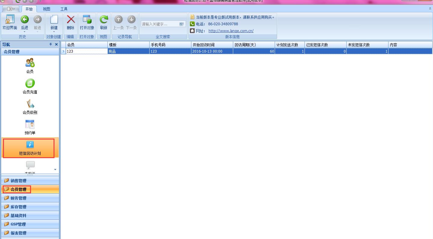 傲藍眼鏡店管理軟件在會員管理里,有個短信回訪計劃,可以讓門店提前設后要回訪的時間,回訪的會員,回訪的內容,不會漏掉一個客戶沒有回訪的,讓客戶覺得很貼心,服務很周到的感覺。
